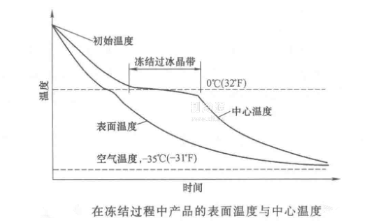 以上的兩種計算法其實代表了現(xiàn)有的一些凍結(jié)模式,前一種方法是使用螺旋速凍機、速凍隧道等速凍溫度比較穩(wěn)定的速凍工況。按凍結(jié)的最終蒸發(fā)溫度(比如說按-42 ~-40℃ ),選擇對應(yīng)的壓縮機型號能滿足的情況下,一般采用的蒸發(fā)溫度計算是-33 ~-30℃,即按已經(jīng)選擇的壓縮機在-33~-30℃的工況下對應(yīng)的負(fù)荷,來確定低壓循環(huán)桶的負(fù)荷以及冷凝負(fù)荷。而后一種凍結(jié)模式代表采用直接接觸速凍工具,如平板速凍機、浸泡凍結(jié)等方法。壓縮機的選擇是按前面一種方法,但是蒸發(fā)溫度和冷凝負(fù)荷計算,是按凍結(jié)產(chǎn)品過冰晶點的溫度進行的。而傳統(tǒng)的速凍間凍結(jié),所選擇的冷凝負(fù)荷是在前面提到的這兩者之間,這是在實踐中采用的方法。
