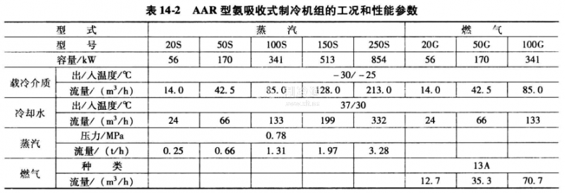 近年來,在日本進行了新型氨吸收式制冷機組的商業化開發。例如AAR型氨吸收式制冷機組分為蒸汽和燃氣兩種型式,制冷容量在56~854kW的范圍內,適用的溫度范圍是0~-50℃。