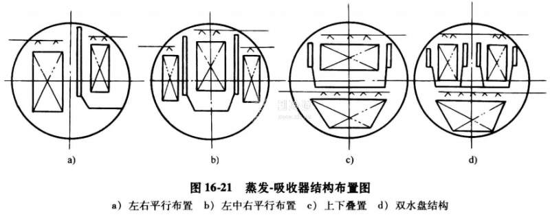 蒸發器和吸收器的力相同,通常布置在一個筒體內,如圖16-21所示。