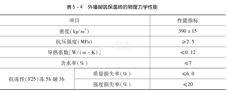 外墻砌筑保溫磚在砌筑施工時須采用保溫膠砂漿砌筑。保溫膠砂漿的物理力學(xué)性能應(yīng)與外墻砌筑保溫磚基本一致,使其性能相互匹配。即保溫膠砂漿干制品的密度應(yīng)為400kg/m3左右,抗壓強度大于2.5MIPa,導(dǎo)熱系數(shù)應(yīng)為0. 12W/(m·K)左右,抗凍性滿足表5-19要求。