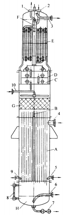 發生器是用來加熱濃氨水溶液到沸騰,并產生氨一水混合蒸汽的設備。在化工中又稱為沸器、亞沸器、再沸器。發生器屬于壓力容器,一般設計壓力1. 6MPa,設計溫度200℃。加熱熱源主要是蒸汽或廢熱蒸汽。有些情況下,也可采用高溫工業氣體、帶有水蒸汽的工藝物流、高溫熱水等。也有用燃油、燃氣的燃燒產物加熱的。