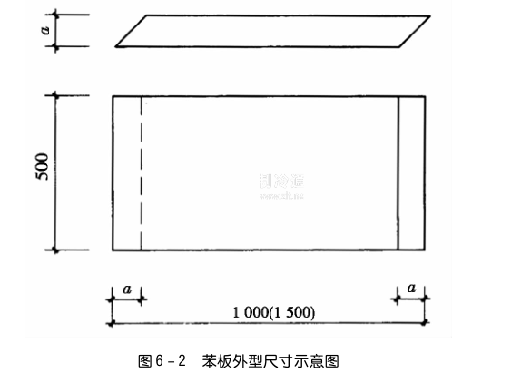 第六,保溫層采用阻燃型聚苯乙烯泡沫板時,其主規格有:1500毫米× 500毫米×n和1000毫米× 500毫米×a兩種。板厚按設計要求確定板的邊緣沿短邊方向切成45°斜角,見圖6-2。