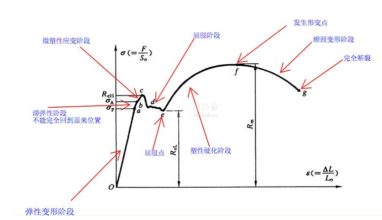 (2)屈服極限(又稱屈服強(qiáng)度)定義為:試樣在拉伸過程中,拉力不增加(甚至有所下降),還繼續(xù)顯著變形時(shí)的最小應(yīng)力。有些鋼材在拉伸試驗(yàn)時(shí),無明顯臨界屈服點(diǎn),則規(guī)定其發(fā)生0.2%殘余伸長的應(yīng)力為“”條件屈服極限”,以“σ0.2”表示。
