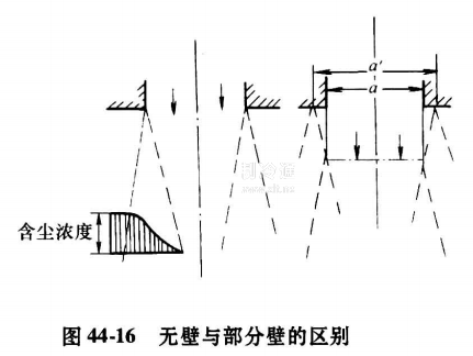 為了保護設備送出的潔凈氣流免受周空氣污染,可采用全壁方式(即把局部空AID月板壁全部圍檔)、部分壁方式(即部分圍檔)和空氣幕方式(用空氣幕作圍檔)IN檔越長,凈區作用域越遠,但空間自度越小,對藝適應能力越差。有時為廠適應工藝需要不得不采無壁方式。圖44-16示出無壁與部分壁的區別。