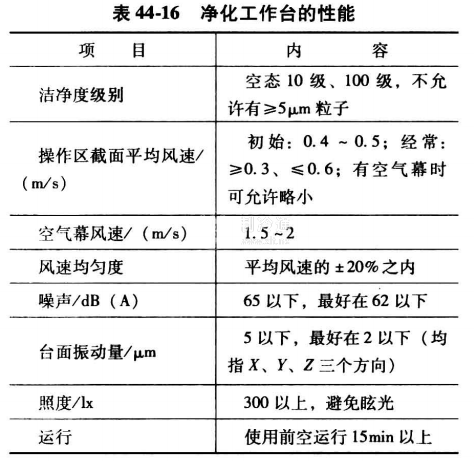 凈化工作臺的性能見表44-16所示。為了檢驗其實際性能,都必須遵循統(tǒng)一的性能測試標準。