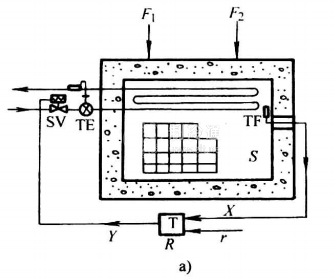 在圖48-4b所示的框圖中,被控參數x是被控對象S的輸出信號,如冷庫庫溫。凡是可能引起被控參數波動的外來因素(除控制作用外)均稱為干擾作用,如室外溫度變化、貨物熱等。干擾作用與控制作用對被控參數的影響的信號傳遞通道,稱為干擾通道和控制通道。