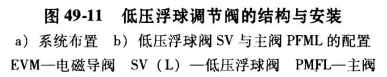 低壓浮球閥常直接和滿液式蒸發(fā)器連通,按蒸發(fā)器液位的高低,調(diào)節(jié)從貯液器進(jìn)到滿液式蒸發(fā)器的制冷劑流量,其結(jié)構(gòu)與安裝見(jiàn)圖49-11所示。