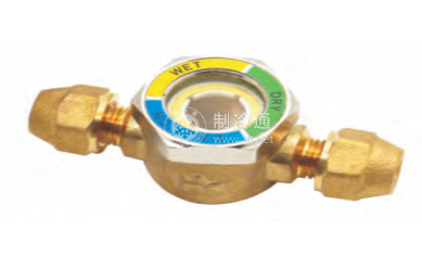 (3)制冷劑含水觀察鏡 它安裝在制冷系統的高壓液管上,用于觀察氟利昂制冷劑中的含水程度,又叫水分指示器。這是氟利昂制冷系統所特有的一種觀察鏡。