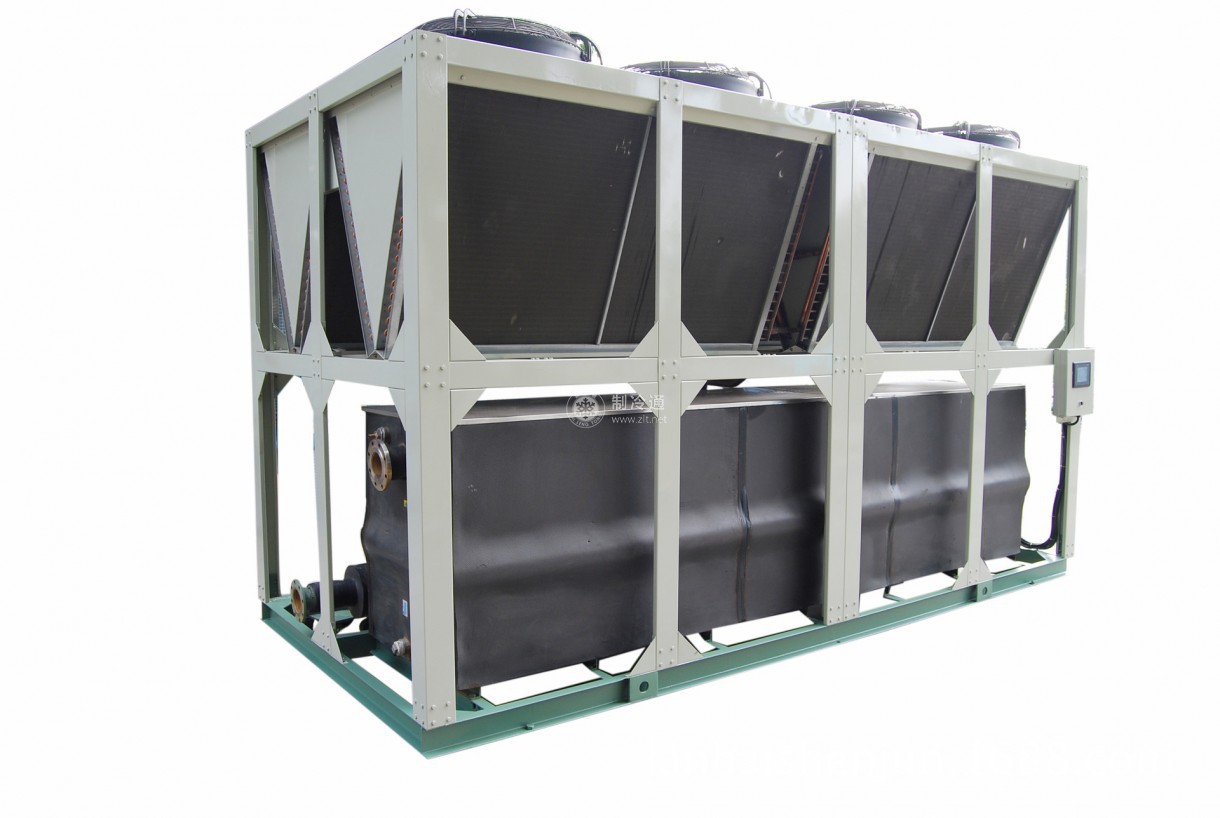 風冷螺桿式冷水機組 這是以單臺或多臺螺桿壓縮機為主機,與管殼式發器、風冷式冷凝器組裝于一體,置于開敞空間,單一供冷的一種整體式供冷機組。其優點是整體性好、安裝方便、運行振動小、噪聲低、運行可靠性高、維修簡便。不足之處是售價較高。