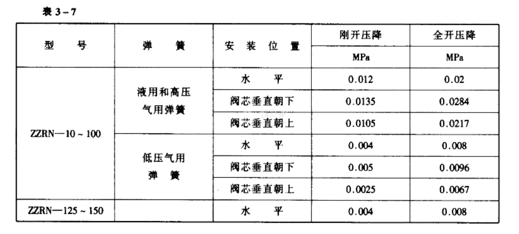 由于活塞式止回閥靠自重關(guān)閉,因而只能垂直安裝在水平管路,其開(kāi)啟壓力損失見(jiàn)表3-7。