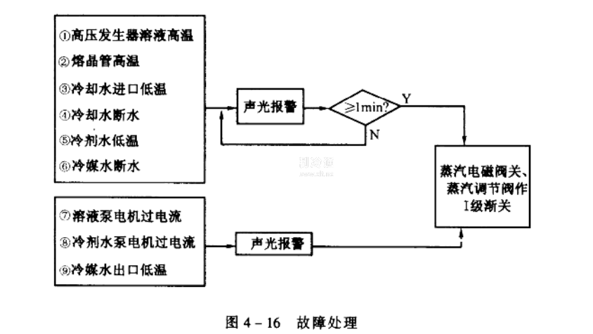 用溫度控制器檢測溶晶管溫度.當溶晶管溫度高時,表明出現了溶液結晶的故障,應予以處理。這時,溫控器動作,開始報警,并使機組進入稀釋運行。