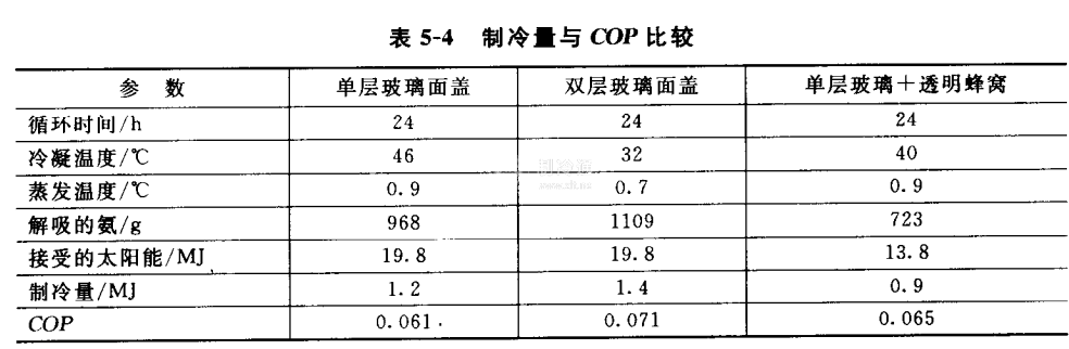 Critoph等認為,從制冷性能和經濟性的雙重角度出發,具有單層玻璃面蓋的結構是最好的選擇。透明蜂窩材料的使用雖然具有一些優點,但由于成本太貴,與單層玻璃面蓋相比,月前還不具有競爭性。