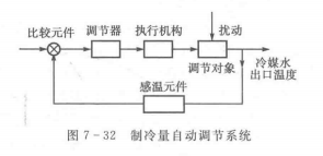 如圖7~32所示。把制冷機作為調節對象,蒸發器的冷媒水出口溫度作為被調參數,外界的變化作為擾動。當外界負荷發生變動時,蒸發器冷媒水的出口溫度隨之變化,通過感溫元件發出信號,與比較元件的給定值比較后將信號送往調節器,然后由調節器發出調節信號,驅使執行機構朝著克服擾動的方向動作,以保持冷媒水出口溫度的基本恒定,目前采用下列幾種方法調節制冷量: