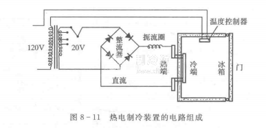 熱電制冷設(shè)備主要由熱電堆、導(dǎo)熱的電絕緣層、冷板和散熱器組成,見圖8一10.其電路組成如圖8-11所示。