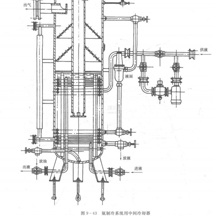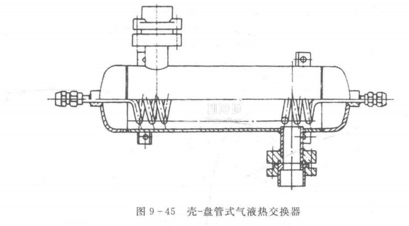 -液熱交換器通常采用如圖945所示的殼盤管式結構。它的外殼由無縫鋼管制成。
