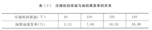 但是,壓縮機在運行時,當排氣速度達到24~30/s時,就會把部分潤滑油帶出氣缸。此外,當排氣溫度達90~140℃時,部分潤滑油也會氣化為油氣(直徑為5~50:m的油粒),隨著制冷劑蒸汽進入排氣管(見表1-2-1),所以,壓縮機在運行時總是把潤滑油源源不斷地排入系統的高壓部分。