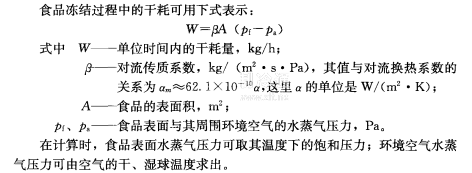 食品凍結過程中的干耗可用下式表示: