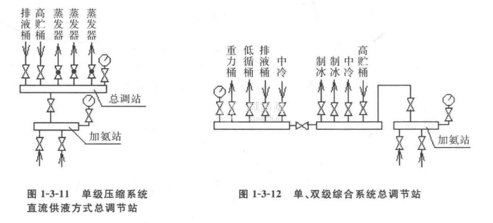 總調節站的作用,是向低壓制冷設備,如低壓循環桶、氨液分離器等分配制冷劑液體,并可以根據負荷的變化,調節和控制供液量。總調節站的配置形式基本有兩大類型: