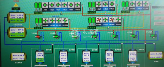 整個系統全部由一臺中央控制計算機實現遠距離實時監控,既可以獲取各個分庫內的O2、CO2、溫度、濕度數據,顯示運行曲線,自動打印記錄,啟動或關閉各系統,還能根據庫內物料情況隨時改變控制參數。中央控制計算機采用Windows界面,使操作人員可以方便直觀地獲取各方面的信息。