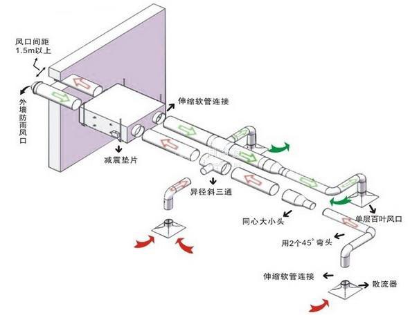 4)新鮮空氣進口與廢氣出口不宜設在同一側。若處在同一側時,排出口應在進氣口下部,兩者垂直距離不得小于2m,水平距離不宜小于4m