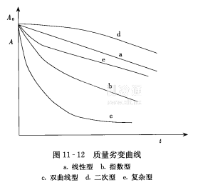 冷凍食品質(zhì)量損失模型像其他食品一樣,冷凍食品在貯藏中變質(zhì)也有很多種原因和機(jī)理。一般來(lái)說(shuō),冷凍食品從加工包裝完成時(shí)開(kāi)始降解。由于不同食品組分的性質(zhì)不同,大體來(lái)說(shuō),冷凍食品的品質(zhì)指標(biāo)有五種降解模式,分別是線性型、指數(shù)型、雙曲線型、二次型和復(fù)雜型,如圖11-12所示。