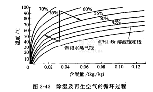 干燥劑的整個除濕-再生循環的狀態變化圖3-42所示。1→2是除濕過程,溶
