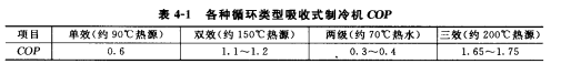 簡(jiǎn)介單效溴化鋰吸收式制冷機(jī)如表4-1所示,熱力系數(shù)(COP)約為0.6,其驅(qū)動(dòng)能源如果采用0.03~0.15MPa的蒸氣,即為蒸氣型單效溴化鋰吸收式制憐機(jī)組;如果采用85~150℃的熱水作為驅(qū)動(dòng)熱源,即為熱水型單效溴化鋰吸收式機(jī)組。