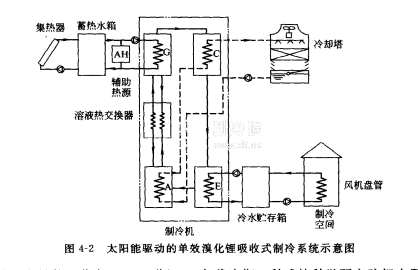 圖42所示是太陽(yáng)能驅(qū)動(dòng)的單效溴化鋰吸收式制冷系統(tǒng)的示意圖。