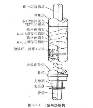 半硬質材料多用鐵絲和鐵絲網固定;在管道及圓筒形設備上敷設半硬質材料時,可視被隔熱物體的直徑大小采用不同粗細的鐵絲綁扎,綁扎方法與硬質材料相同(參考圖9-3-2)。