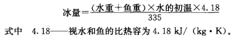 (2)水冰法:水冰法就是先用冰把淡水或海水的溫度降下來(淡水0℃,海水一1℃),然后把魚類浸泡在水冰中的冷卻方法,其優點是冷卻速度快,能集中處理大批量的魚貨。水與冰的比例關系可按下式近似計算: