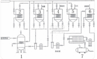 氮與油不相溶且油比氨液重而沉于各容器的底部,因此在冷凝器、儲液器等盛氨液的容器底部都有集污包,以搜集容器中的潤滑油。這些潤滑油用油管匯集到集油器。集油器分高壓側集油器(15)和低壓側集油器(17),冷凝器、儲液器、油分離器底部的油,匯集于高壓側集油器,中冷器、排液桶、低壓循環儲液器的油匯集于低壓側集油器。放油時,打開集油器上通往循環儲液器的抽氣管上的閥,同時打開需要放油的容器(如冷凝器等)下部的放油閥,則容器中的油與氨的混合液進人集油器。待集油器裝滿后,關閉集油器的進油閥,油氨混合液中的氨就會在抽氣管的抽吸下蒸發后被壓縮機抽走。待氨蒸發完后,關閉抽氣閥,打開通往高壓排氣管的加壓閥和集油器的放油閥,集油器中的油被壓出至油處理系統經凈化后重新加人壓縮機中使用。