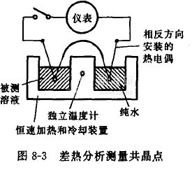差熱分析測量共晶點是利用溶液凍結前是“過冷”的,凍結時放出潛熱而其自身溫度略有升高這一物理現(xiàn)象來測量的。