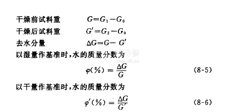 →從去濕箱中取出玻璃簡組裝成圖8-19所示裝置·連接真空泵使內部減壓到10Pa左右,以60℃溫度進行3h的真空干燥·從裝置上取下玻璃簡放進去濕天平箱→稱得干燥后的重量G2.由上述G0、G1、G2可得