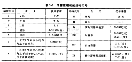 三、活塞壓縮機的結構代號見表3-1。