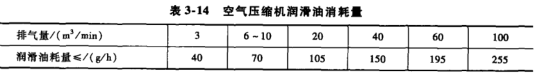 往復活塞空氣壓縮機的曲柄連桿機構和氣缸填料函部分潤滑油總耗量如表3-14所示。