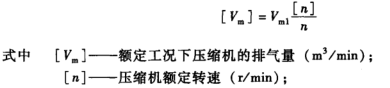 3)轉速修正當壓縮機試驗時的轉速與額定轉速不相同時,應按下式悠正壓縮機的排氣量