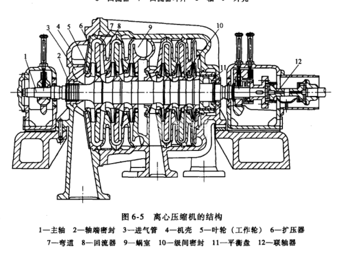離心壓縮機的結構如圖6-5所示。