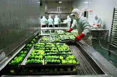 蔬菜在凍結(jié)前都要進(jìn)行必要的處理,處理的內(nèi)容和工序根據(jù)蔬菜的種類和產(chǎn)品要求等不同而異。清洗后的蔬菜除去皮、種子等不可食部分,再依制品的不同要求切分成各種規(guī)格形狀。在預(yù)處理過程中原料不能直接與銅或鐵的容器直接接觸,否則產(chǎn)品易變色、變味,所以加工過程中應(yīng)使用不銹鋼器具。