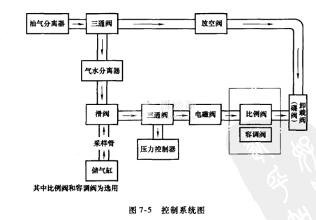 控制系統圖如圖7-5所示。控制系統包括卸載閥、電磁閥、放空閥、壓力控制器、滑閥、比例閥、容調閥等。