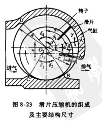 滑片壓縮機的組成及主要結(jié)構(gòu)尺寸如圖8-23所示。