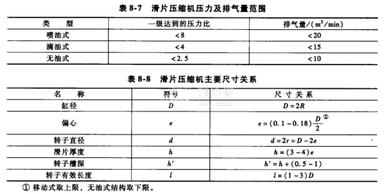 滑片壓縮機的主要尺寸關(guān)系如表8-8所示。