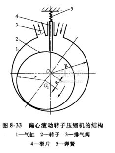 偏心滾動轉子壓縮機的結構如圖8-33所示。