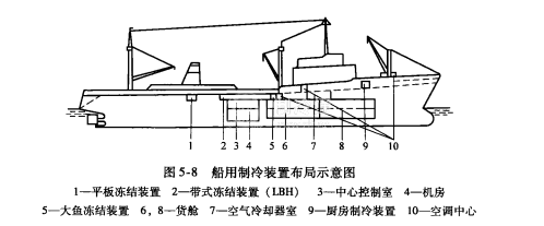 核心提示:冷藏船用制冷裝置冷藏船上一般都裝有制冷裝置,用船艙隔熱保溫。圖5-8為船用制冷裝置布局示意圖。船上條件與陸用制冷設備的工作