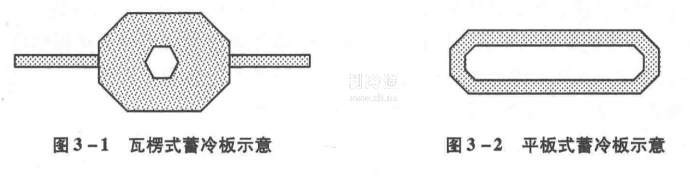 可以采用瓦楞式、蜂窩式或雙層空穴板蓄冷板,內部充注蓄冷劑,運行前對蓄冷劑進行蓄冷,運行中蓄冷劑釋放冷量維持車內溫度。圖3-1和圖3-2分別為瓦楞式蓄冷板和平板式蓄冷板的結構示意圖。