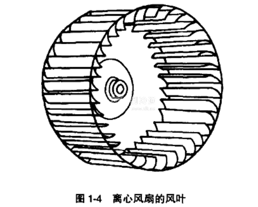 離心風扇的風葉也多采用ABS塑料注塑成型,葉片形狀呈長方形圓弧片,數量較多,約為30~60片。其外形如圖1-4所示。