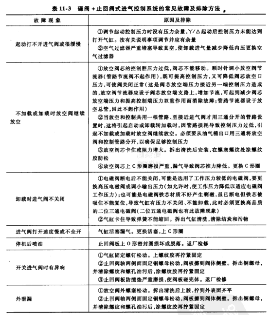 碟閥+止回閥式進氣控制系統的常見故障及其排除方法參閱表11-3。