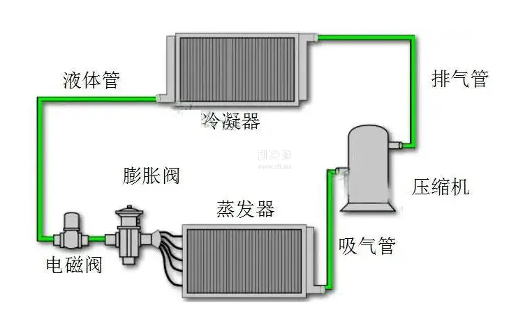 物理學知識告訴我們,物質在從氣態變為液態的液化過程中會放出熱量,而從液態變成氣態的過程中會吸收熱量。這種液相和氣相的相互轉化稱為相變。空調器就是利用這個原理,通過制冷劑(如氟利昂R22)的不斷汽化和液化的相變循環,將室內的熱量吸收后又轉換到室外去,從而達到室內制冷的目的。