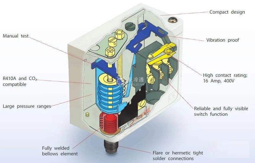 低壓壓力繼電器的調定值一般為比最低蒸發溫度低5℃所對應的壓力。