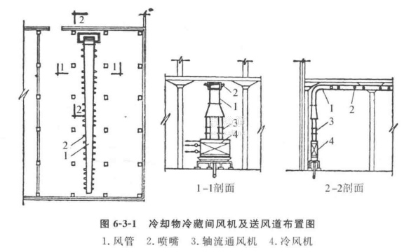 冷卻物冷藏間的設備包括冷風機和送風道。