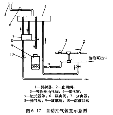 排除非凝性氣體,也可用溶液泵動力,現就某直燃型機組的自動抽氣裝置加以說明,如圖6-17所示。